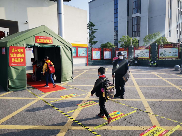 5月11日,全区小学三、四年级结束了超长假期,正式开学。为认真落实上级部门有关工作要求,切实做好新冠肺炎疫情防控期间学生返校安全保障工作,江宁保安公司校园片区保安队员全员出动,为“疫”线护航,以最高标准、最严措施,圆满完成了开学首日安保工作。