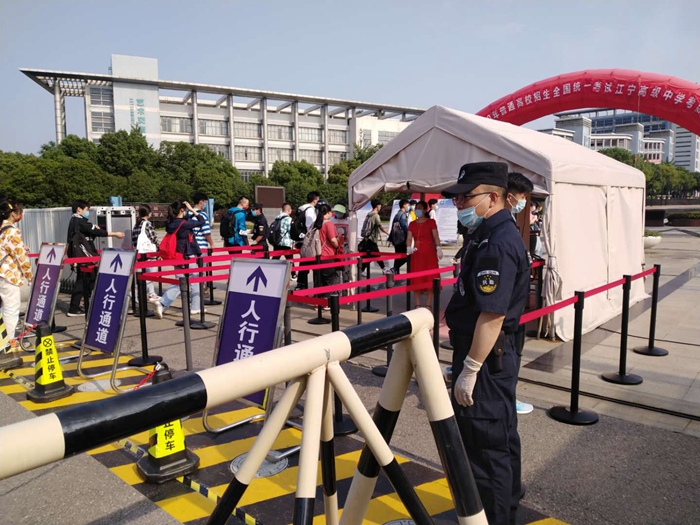 为做好2020年江苏省普通高校招生考试安保工作,南京市江宁区保安服务公司精心组织、科学谋划,制定了详细的安保工作方案,加大了考点巡逻力度,并抽调多名经验丰富的保安员充实到各考点,协助做好考点秩序维护工作。同时对考点一键式报警设备进行了安全检查,确保考试期间设备安全有效。