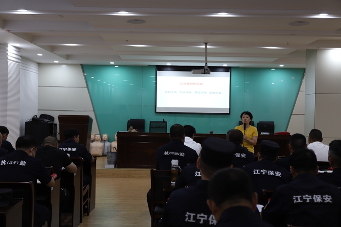 8月10日,江宁保安公司联合南京市江宁区红十字会,在公司举办了一场别开生面的“应急救援培训会”,保安管理部大队长、中队长、一线保安员共45人参加了此次培训。