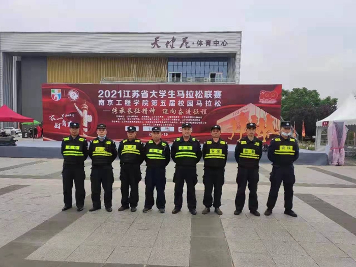 5月19日,2021江苏省大学生马拉松联赛暨南京工程学院第五届校园马拉松在学校体育中心广场活力开跑!公司驻南京工程学院保安团队按照校保卫处要求,努力克服活动时间长、线路长等困难,对主要路口严格把控,全力做好沿线治安维护、交通疏导工作,规范执勤、文明服务,以饱满的热情和最佳的精神状态,确保了赛事平安、有序、和谐进行。