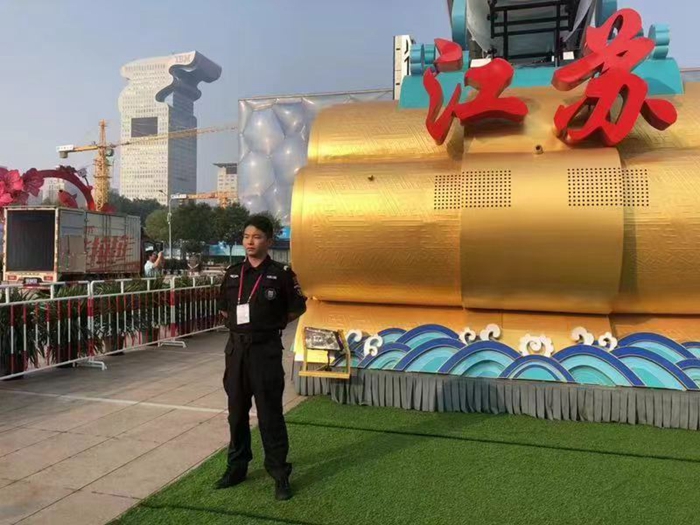 8月,公司选派2名队员前往北京,参加国庆阅兵“江苏彩车”安保工作。在长达2个月的执勤任务中,2名队员以严谨的作风、饱满的热情、高昂的斗志,24小时不间断地坚守在岗位第一线,为“江苏彩车”保驾护航,确保了彩车在行驶、停泊过程中万无一失。10月9日夜间,2名队员载誉而归,向祖国、向社会交上了一份满意的答卷!