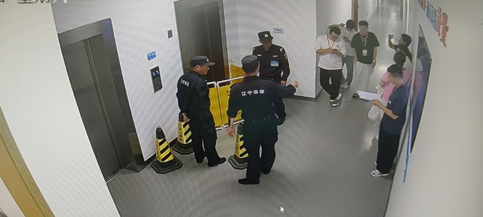 演习模拟了员工在乘坐电梯时,电梯突发故障导致人员被困的场景。被困员工迅速按下轿厢内的紧急呼叫按钮向监控室求救。监控室值班保安接到报警后,立即核实被困人员位置、人数等信息,一边安抚被困人员情绪,告知其保持冷静、不要惊慌、切勿强行扒门,一边迅速通知应急救援小组赶赴现场救援,并第一时间联系电梯维保单位。