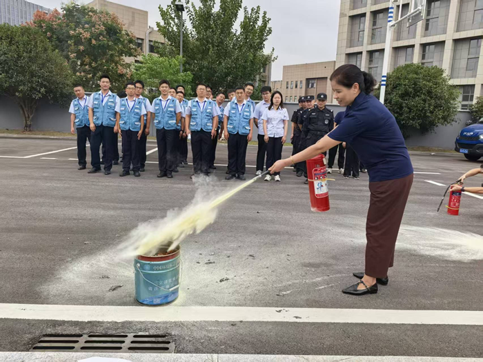 在实操环节中,全体员工积极参与,轮流进行了灭火器实操训练。值得一提的是,本次演练实现了全员覆盖,不仅安全员、后勤人员认真参与,保安、保洁等一线工作人员也都亲自上手操作,真正做到了“人人会用灭火器,个个都是安全员”。